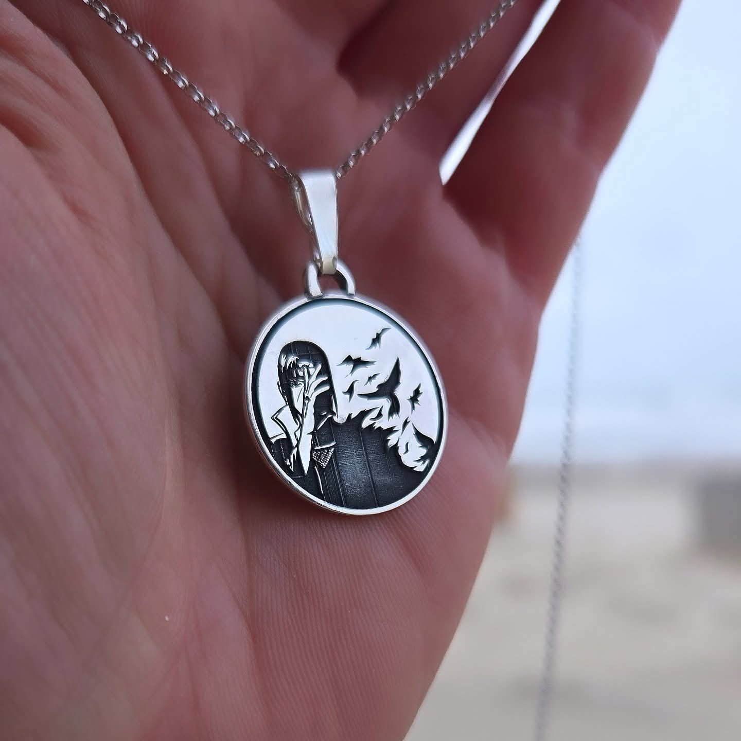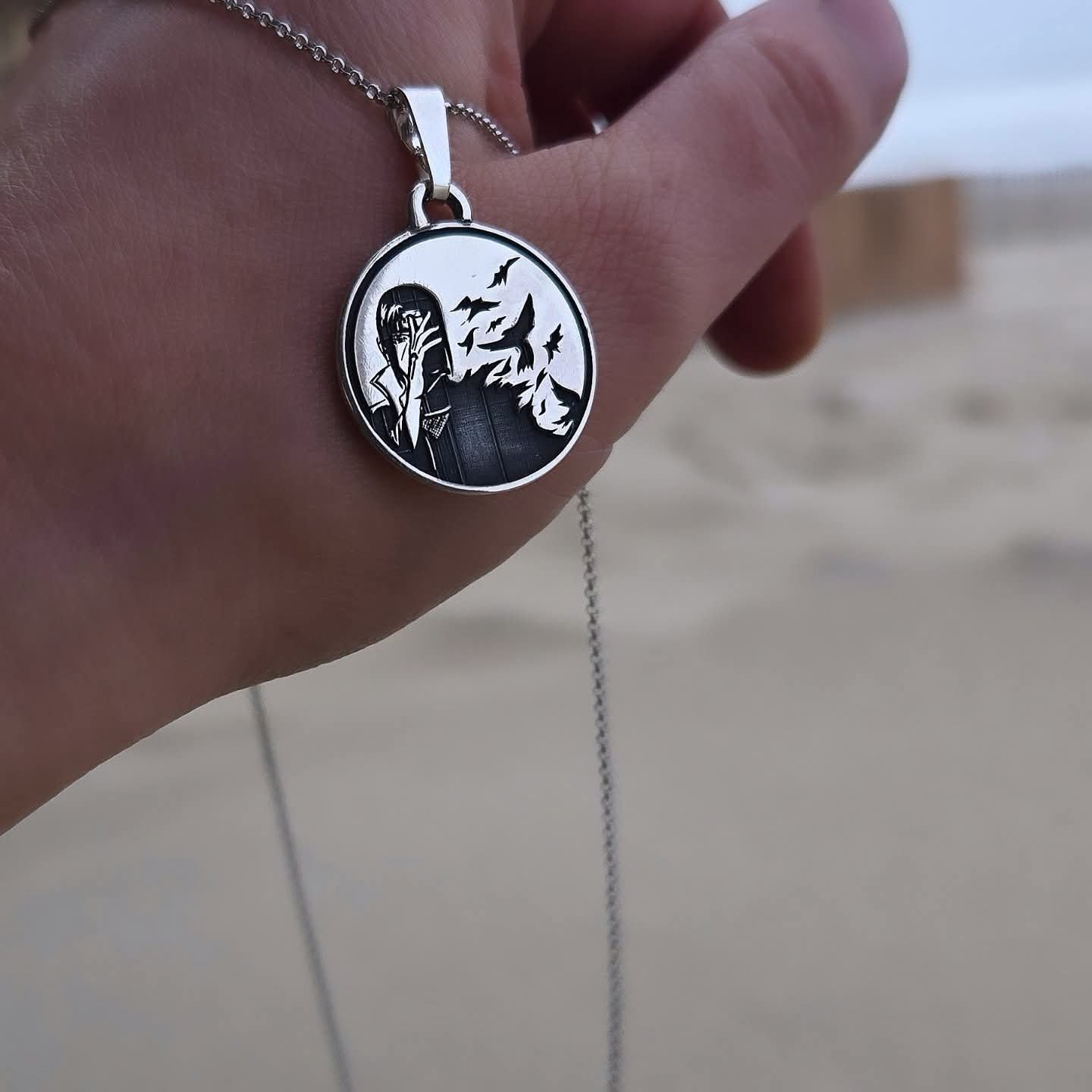 This handmade silver pendant is inspired by Itachi Uchiha, one of the most iconic characters from the Naruto universe.